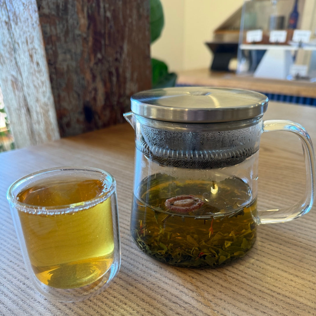 Benefits: Young Hyson green tea is rich in antioxidants that support overall wellness and gentle energy. Strawberry Cream offers a lighter caffeine lift with a smooth finish, perfect for those looking for a refreshing green tea without bitterness.